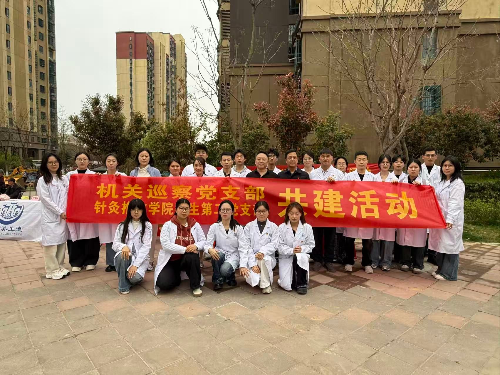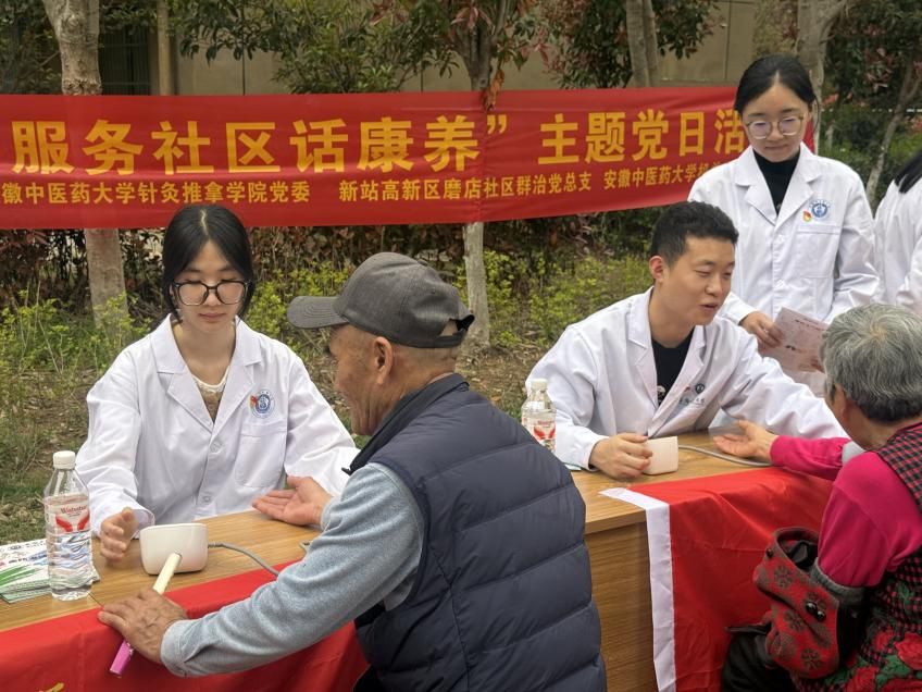 为贯彻落实王清宪省长在全省中医药康养和文旅产业融合发展座谈会上的讲话精神,4月2日下午,机关巡察党支部联合磨店社区群治党总支,针灸推拿学院教工第一、第二党支部,学生第二党支部等在磨店家园同德苑中心广场开展了“党团联动办实事 服务社区话康养”主题党日活动。